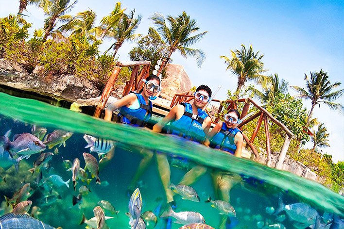 Disfrutarás de un sinfín de actividades acuáticas, aventuras de snorkel, ríos subterráneos, nado con delfines y muchas más opciones. El tour al parque Xcaret concluye con el magnífico show de noche Xcaret México Espectacular.
